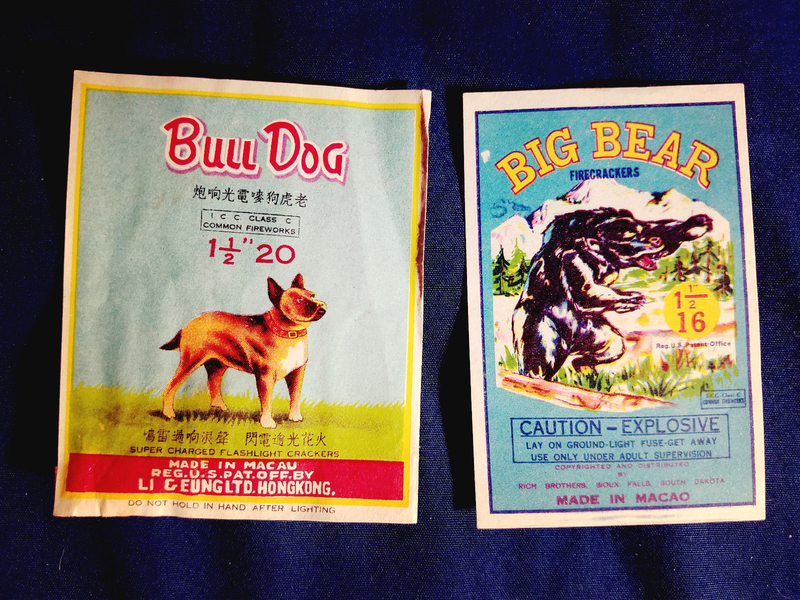 Bulldog 20s and Big Bear 16s Firecracker Label Lot (2)