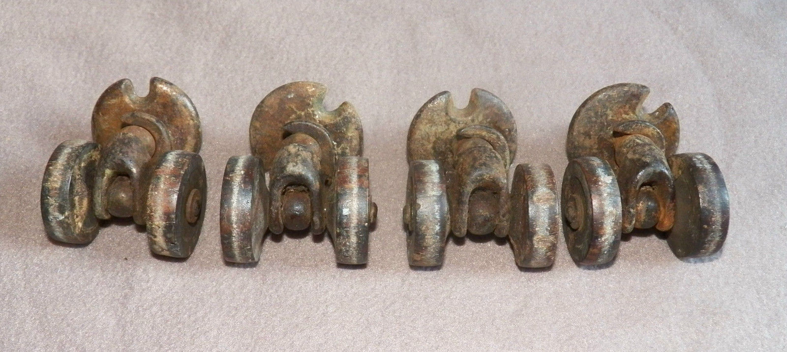 4 Vintage Double Wooden Wheeled Wheel Casters