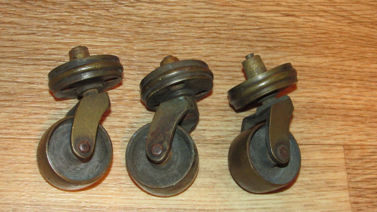 Lot Of 3 Vintage Brass Caster Wheels, Neat!