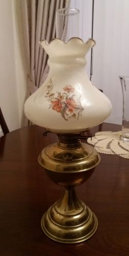 Title (ebay affiliate link): antique/vintage brass oil lamp with glass shade & chimney