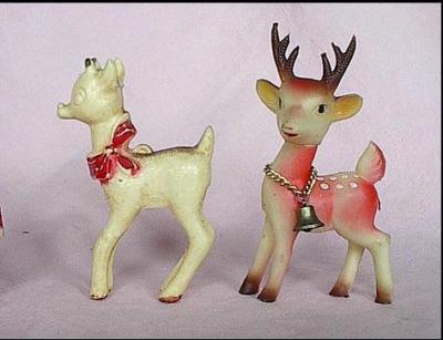 Title (ebay affiliate link): 2 Vintage Rudolph Reindeer Santa Plastic Ornaments