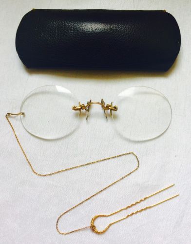 Title (ebay affiliate link): Antique Gold Tone/ Filled? AO FITS-U Pince Nez Spectacles with Hairpin CHAIN