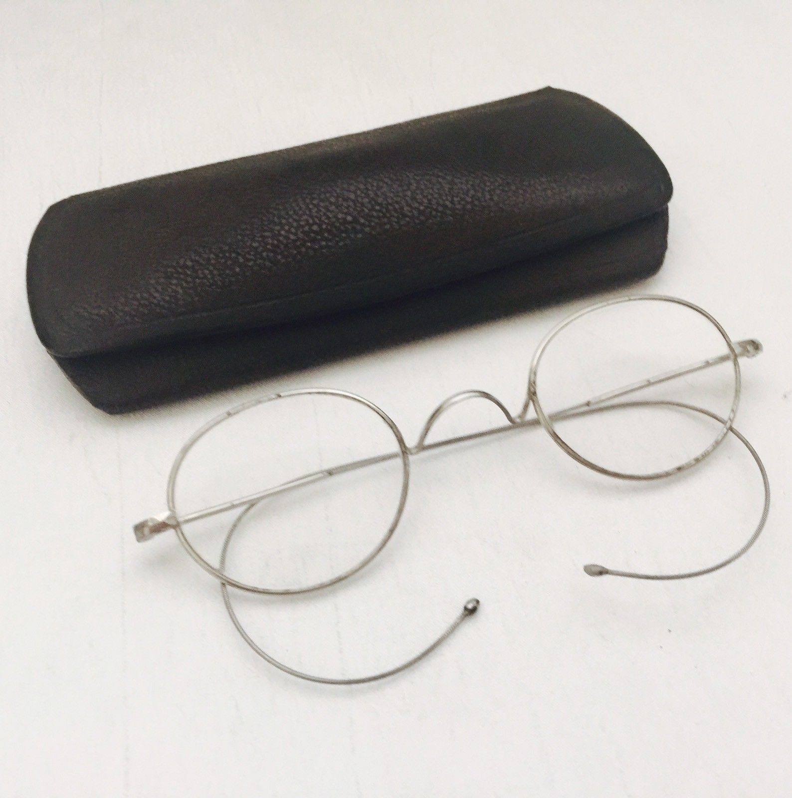 Title (ebay affiliate link): ANTIQUE Silver Tone / White Metal OVAL Lenses Eyeglasses Spectacles with Case