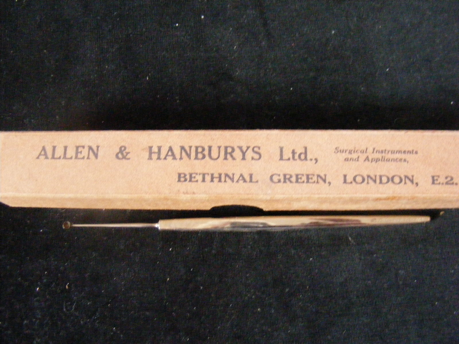 Vintage antique doctors instruments Allen & Hanburys Ltd medical surgical probe