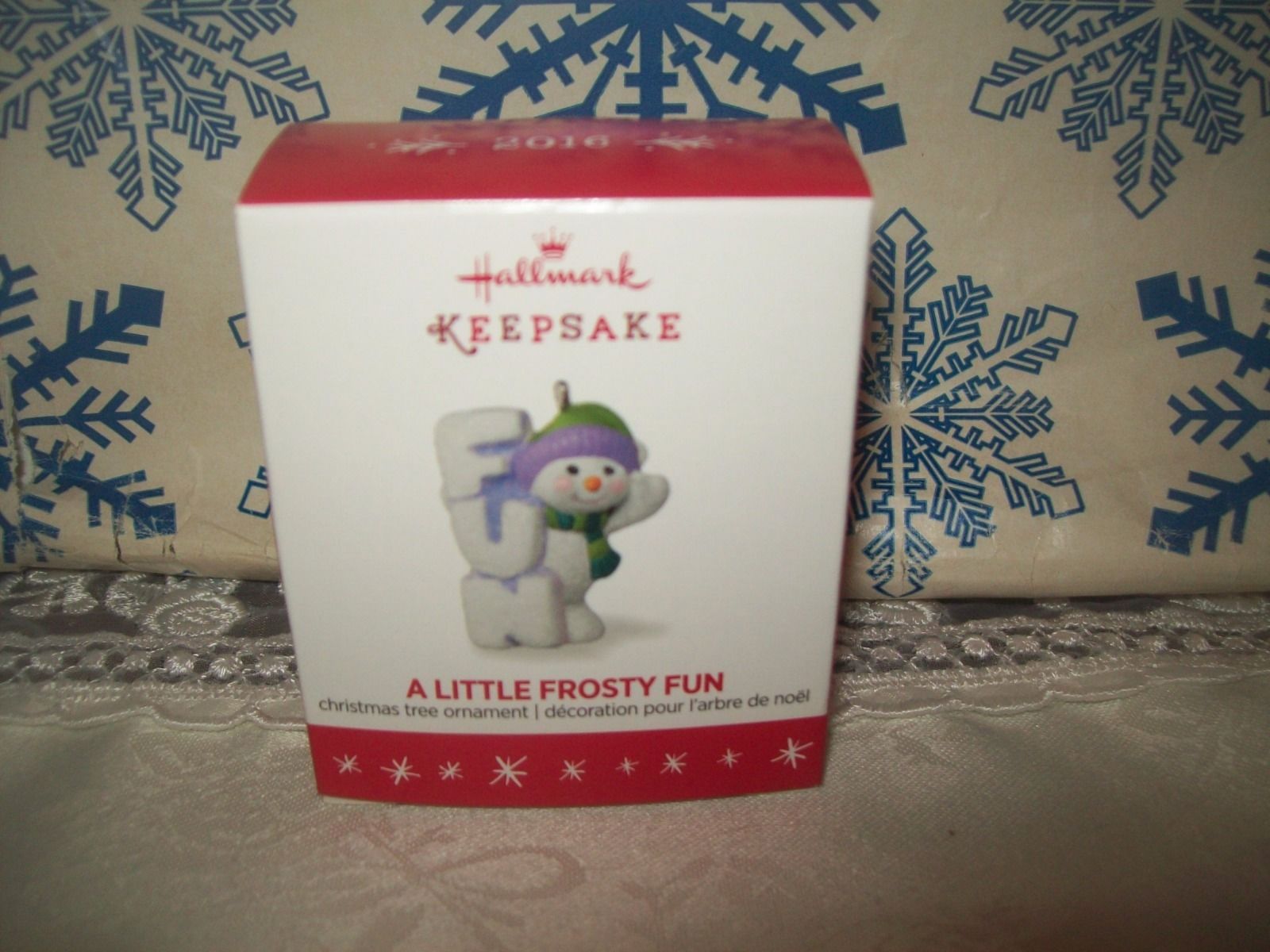 Title (ebay affiliate link): HALLMARK A LITTLE FROSTY FUN 2016 CHRISTMAS KEEPSAKE ORNAMENTS SNOWMAN