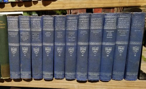 Title (ebay affiliate link): Lot ~ Harvard Classics Blue Books Silver Home Props Decor Decorative Poetry 1910