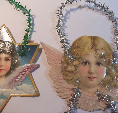 Title (ebay affiliate link): 2 Old Victorian Scrap Angel Tinsel Xmas Ornaments
