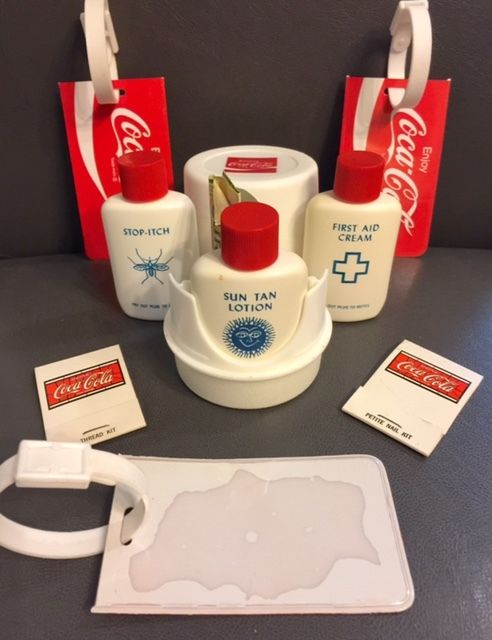 Title (ebay affiliate link): Rare Coca Cola Collectable Travel LuggageTags, Safety Kit, Sewing and File Kits