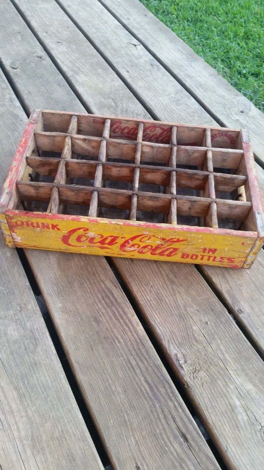 Title (ebay affiliate link): Vintage Yellow Wooden Drink Coca Cola Wood Soda Pop Beverage Crate Case