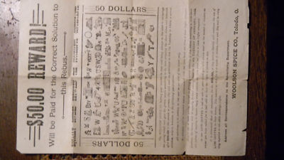 8 x 11 paper handout solve 1892 Rebus Riddle $50 Reward