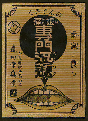 Vintage Medicine Envelope, Toothache, Tooth, Lip, Revenue stamp, Japan