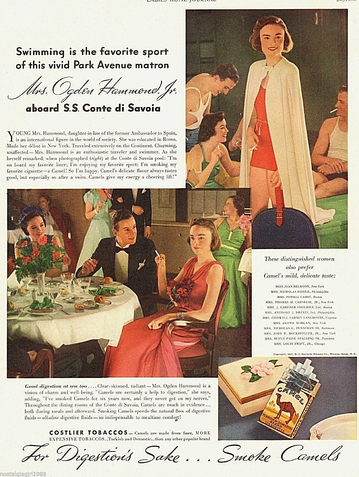 Title (ebay affiliate link): 1937 Mrs Ogden Hammond Jr Camel cigarettes photo print ad 10.5"x13.5"