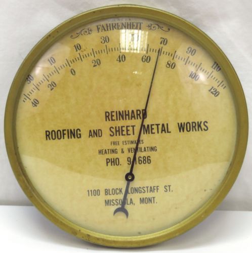 Vtg Round Thermometer Advertising Reinhard Roofing- Sheet Metal Montana 9" (112)
