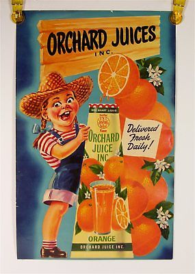 Title (ebay affiliate link): ca1950 ORCHARD JUICE COMPANY ORANGE JUICE CHROMOLITHOGRAPH ADVERTISING SIGN