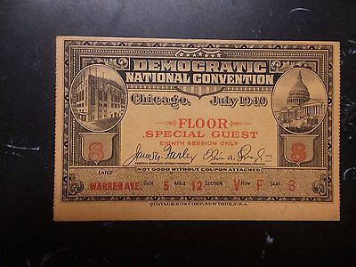 Democratic Party National Convention Floor Ticket July 1940 Chicago Roosevelt