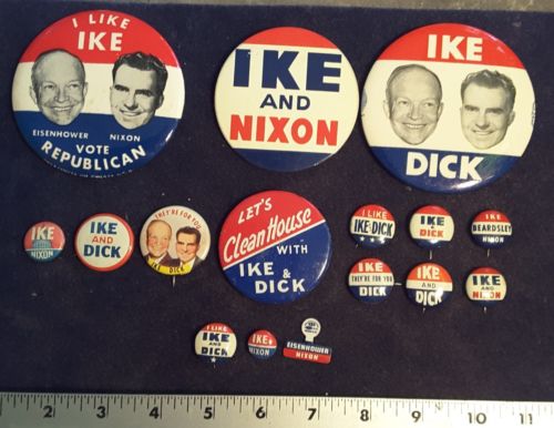 Title (ebay affiliate link): DWIGHT EISENHOWER/RICHARD NIXON 1952-1956 VARIOUS SIZES BUTTON COLLECTION