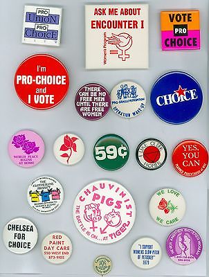 Title (ebay affiliate link): 20 Vintage 70s-80s Women''s Liberation Pro Choice Cause Pinback Buttons We Care