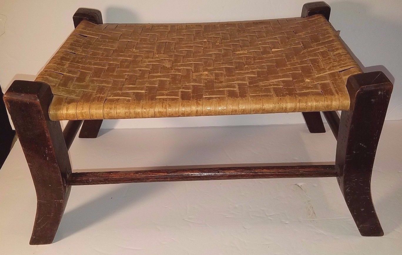 Antique Cane Woven Foot Stool ''Old Hickory'' ?