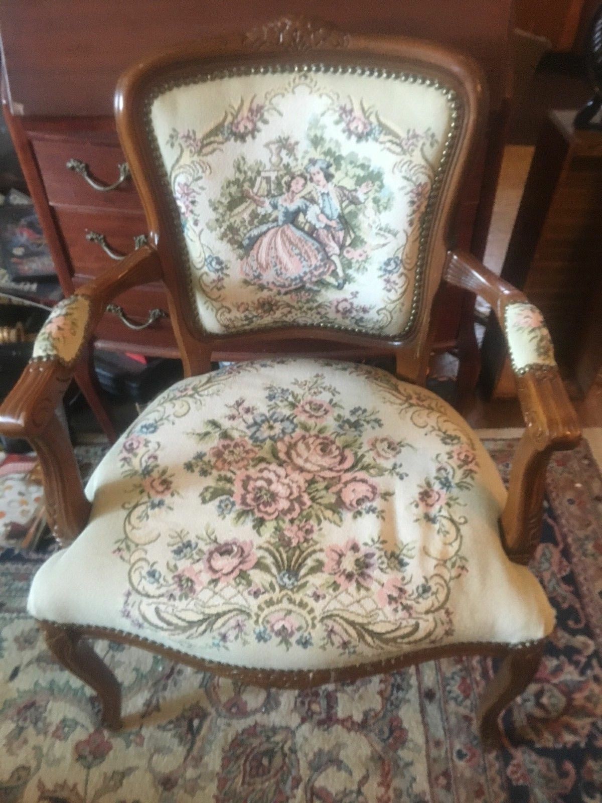 Title (ebay affiliate link): vintage french provincial accent arm chair medium wood tapestry