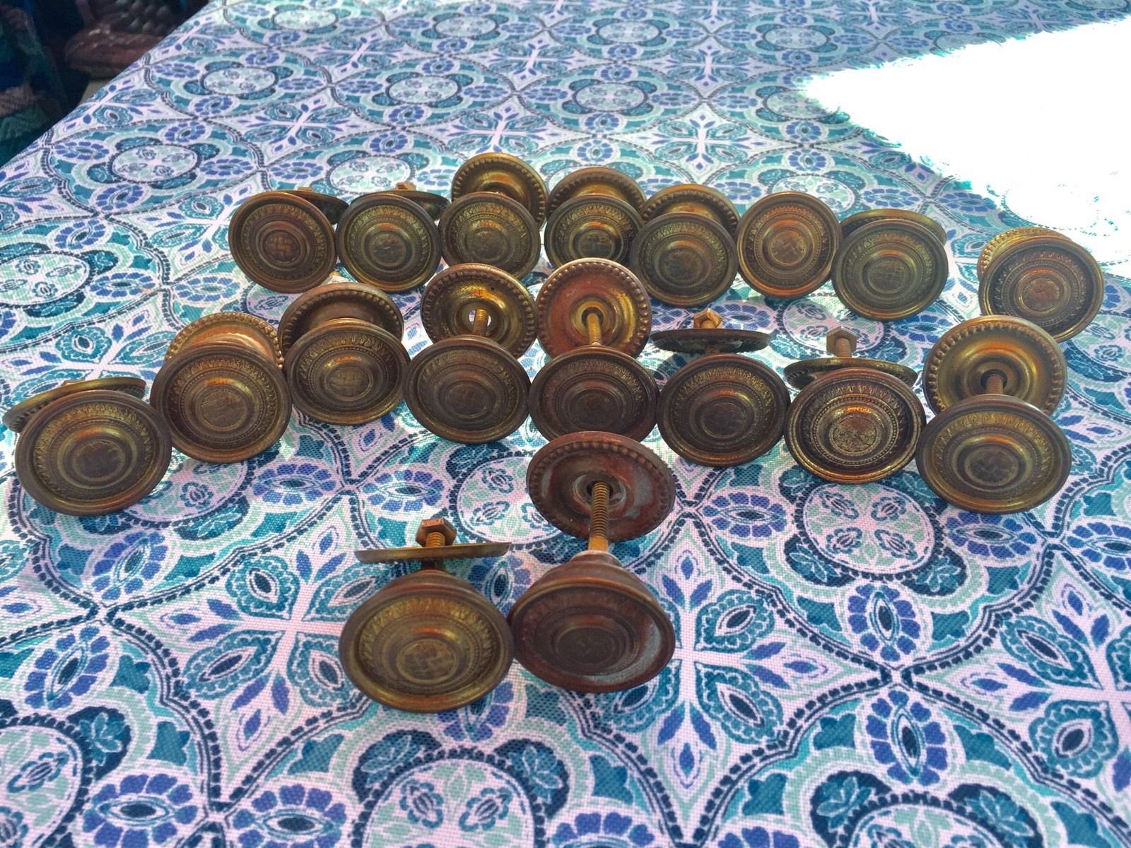 Antique Brass Furniture Cabinet Drawer / Door Knobs Pull Qty 18