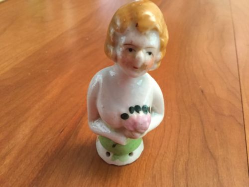 Title (ebay affiliate link): VINTAGE PORCELAIN HALF DOLL w/ Flower 3" PIN CUSHION Signed Japan