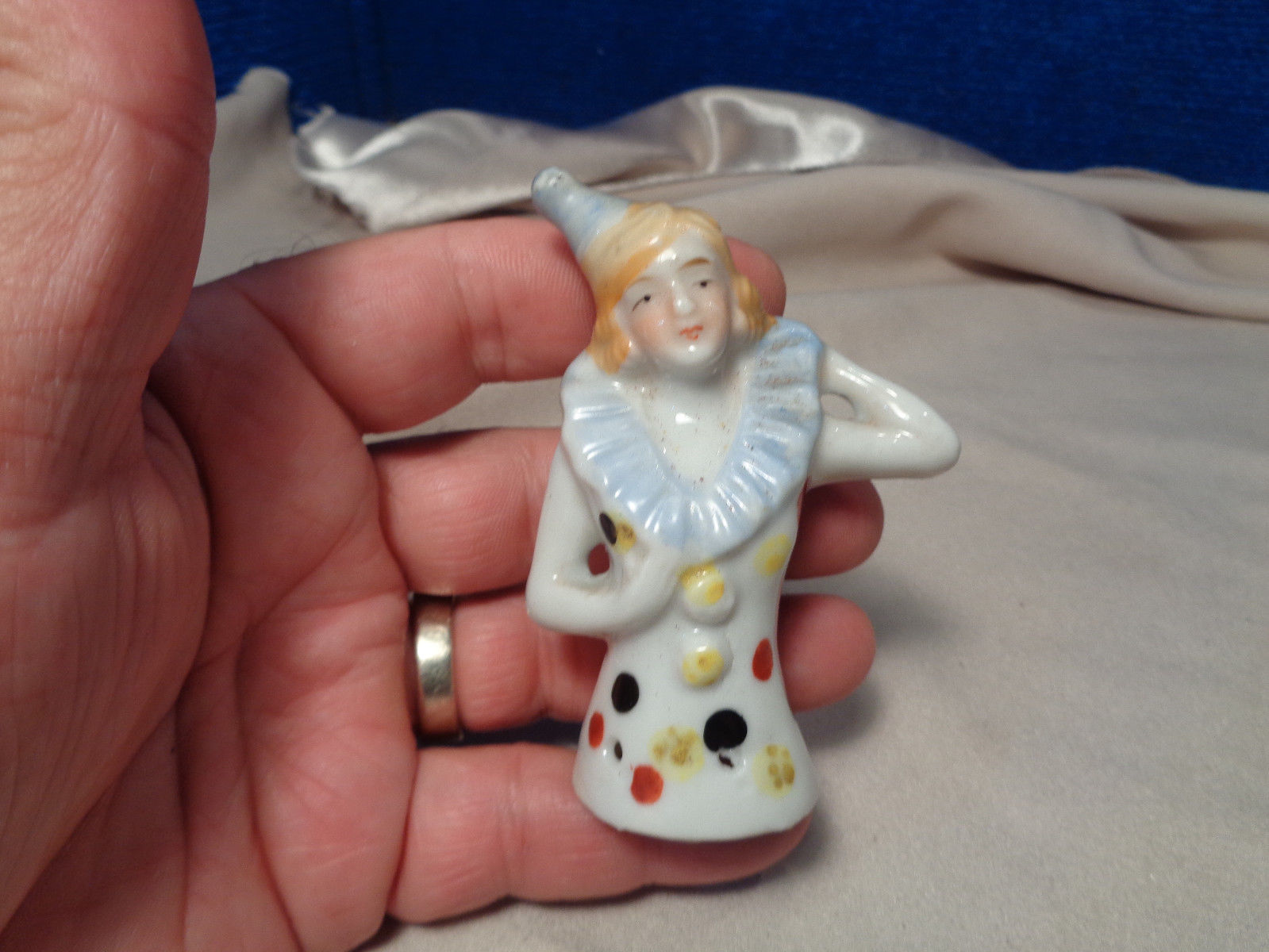 Title (ebay affiliate link): Vintage Porcelain Girl Pincushion Head Doll / Half Doll Pin Cushion #3