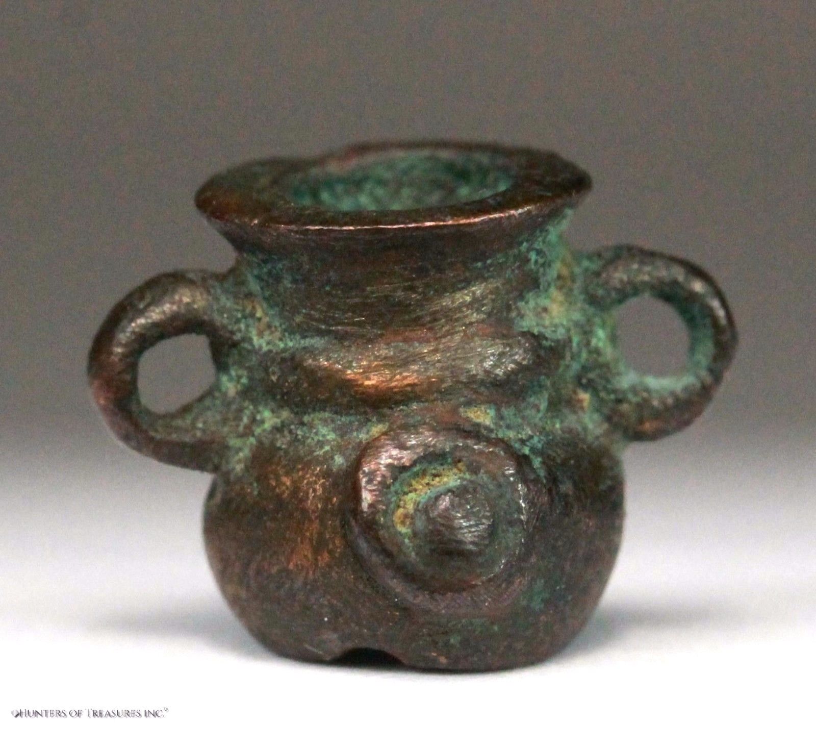 33) Ancient Pre Columbian Moche or Chimu Copper Metal ''''Pot'''' Bead Artifact
