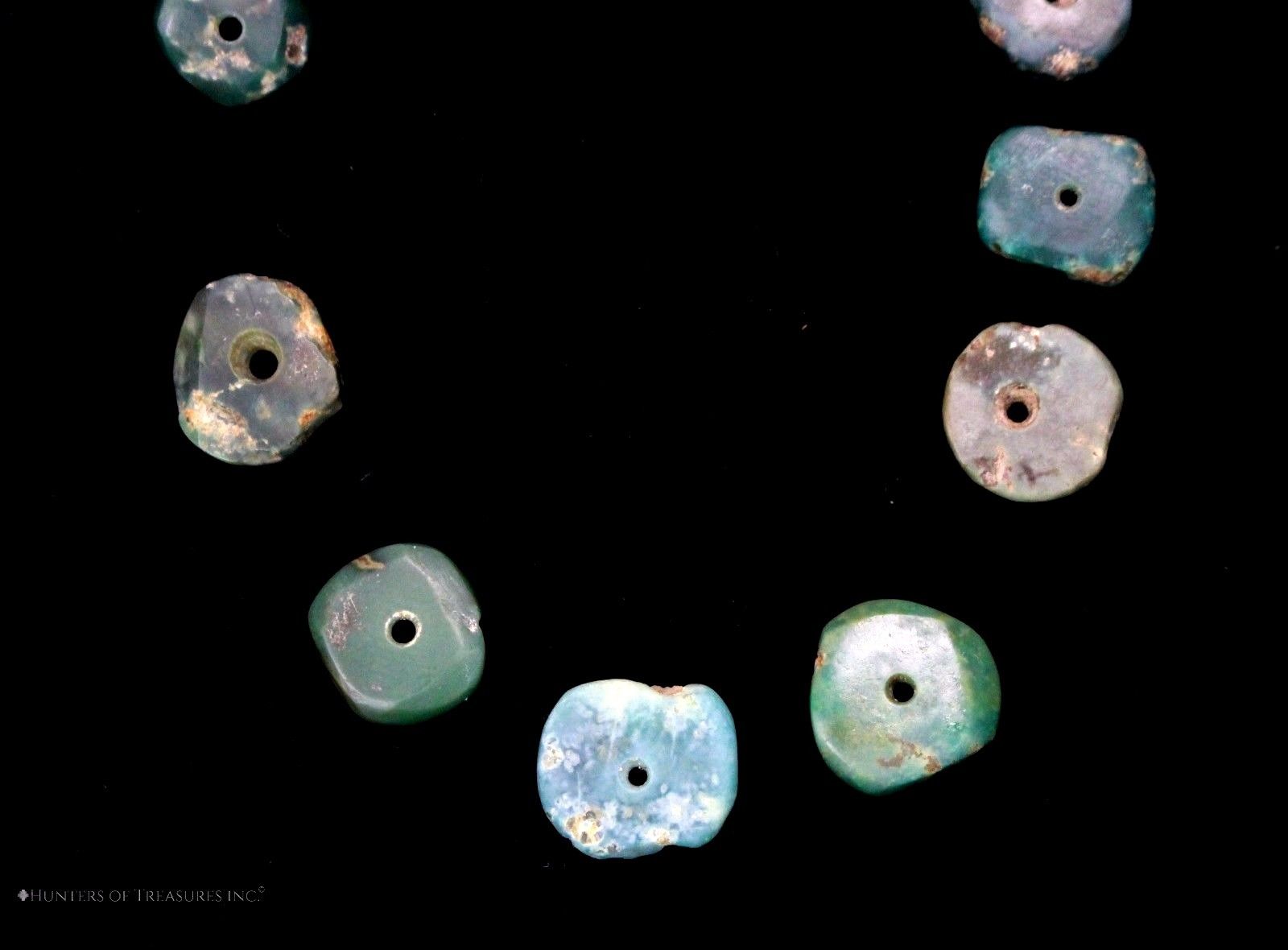 Title (ebay affiliate link): 44) 10 Small Ancient Pre Columbian Moche or Chimu Mosaic Turquoise Disc Beads