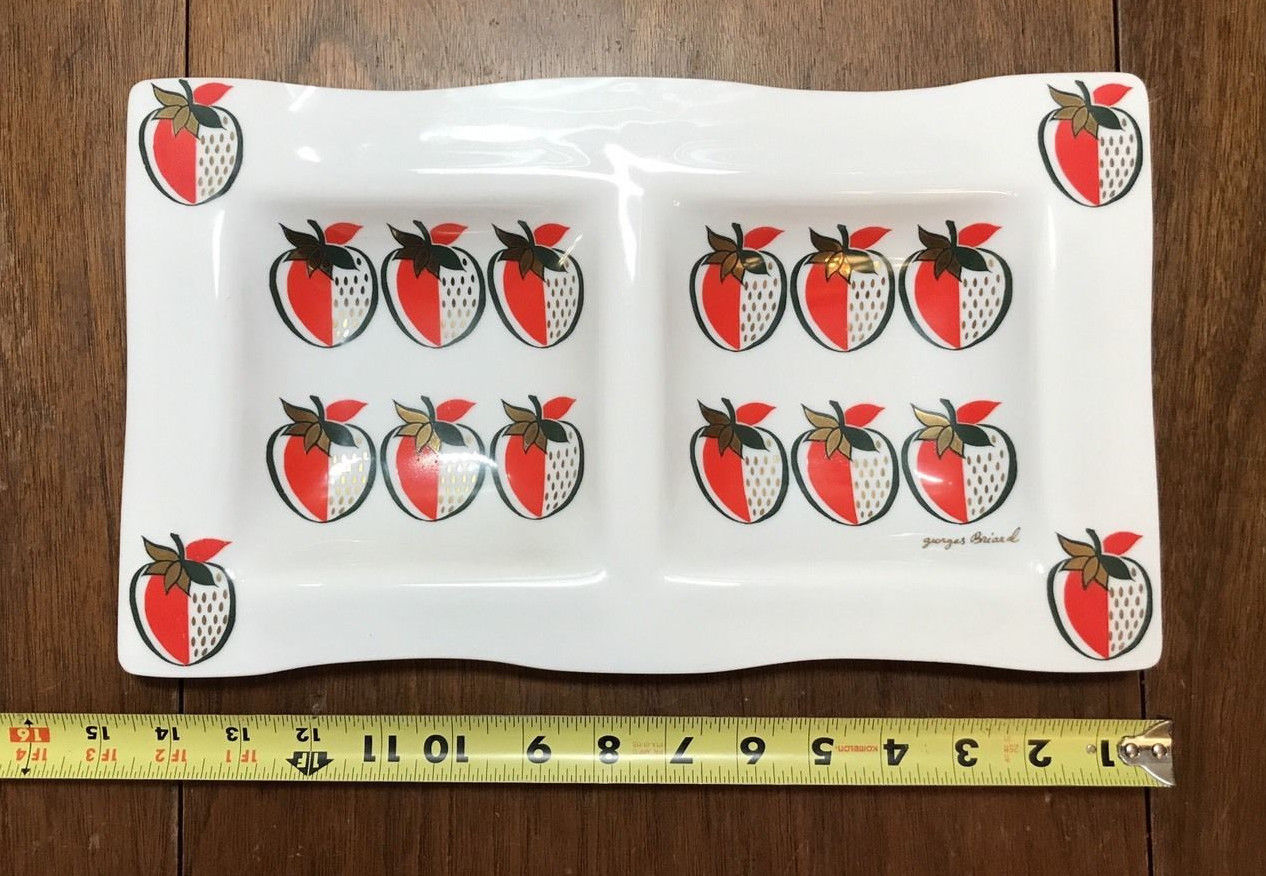 Title (ebay affiliate link): Vintage Signed Georges Briard Strawberry Milk Glass 2 Serving Tray
