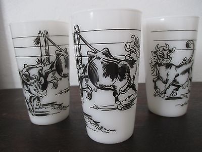 THREE VINTAGE MILK GLASS *ELSIE the COW* TUMBLERS