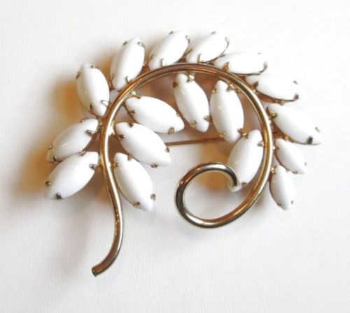 Title (ebay affiliate link): VTG Brooch Pin Signed NAPIER Leaf Art Nouveau Milk Glass Cabochon Prong Set 56!