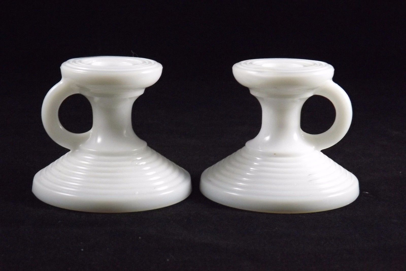 PAIR OF WHITE MILK GLASS CANDLE HOLDER WITH FINGER HOLDER