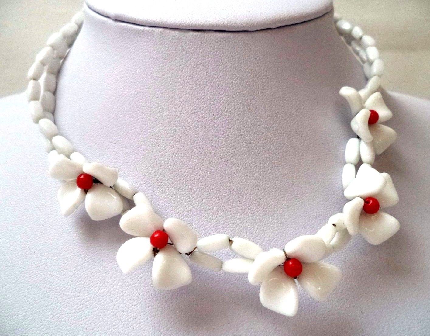 Title (ebay affiliate link): VINTAGE ESTATE SIGNED W. GERMANY MILK GLASS FLOWER 15 1/4" NECKLACE!!! 6273M