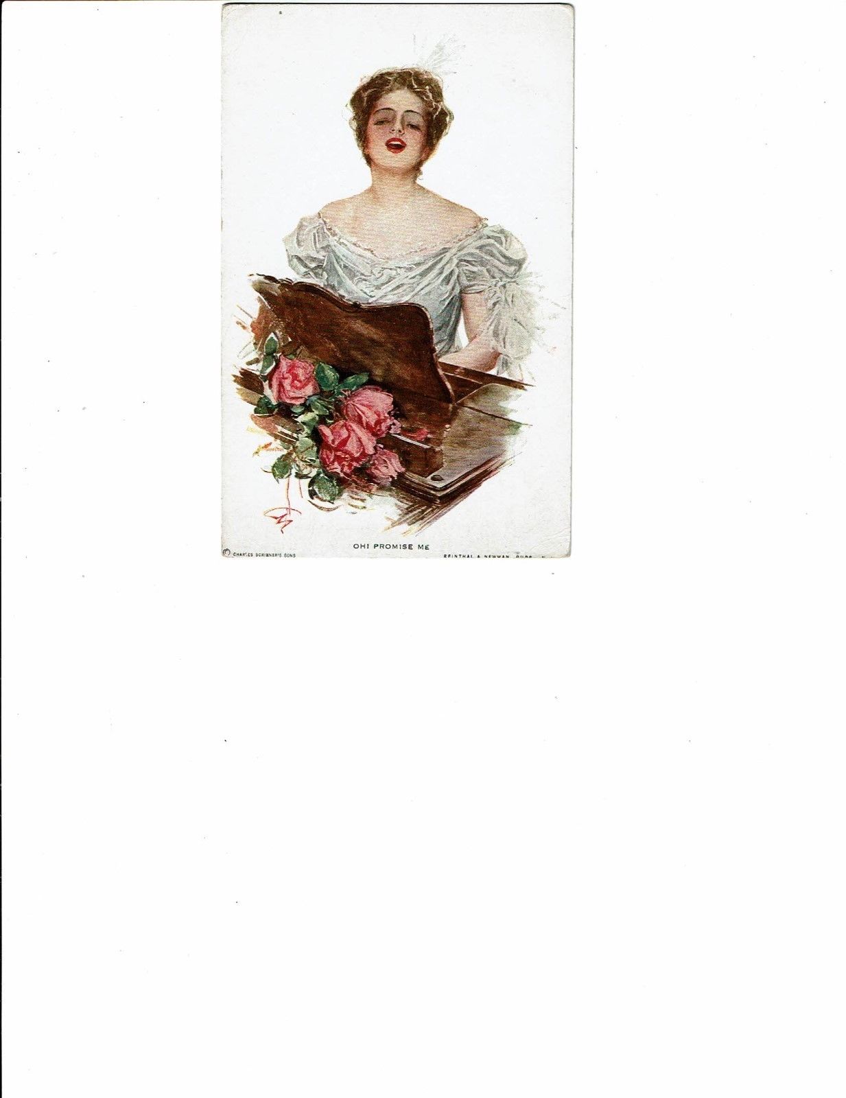 Title (ebay affiliate link): 1 Card Lot, Greeting, Lady at Piano Sings "Oh! Promise Me", Artist??