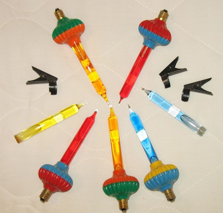 Title (ebay affiliate link): 5 Vtg NOMA C6 BUBBLE LIGHT W/ GLASS SLUG + 3 Alligator Clip & 2 Extra Tubes WORK
