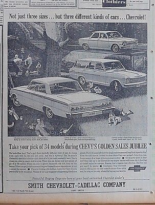 Title (ebay affiliate link): Large 1962 newspaper ad for Chevrolet - Not just 3 Sizes, but 3 Different kinds