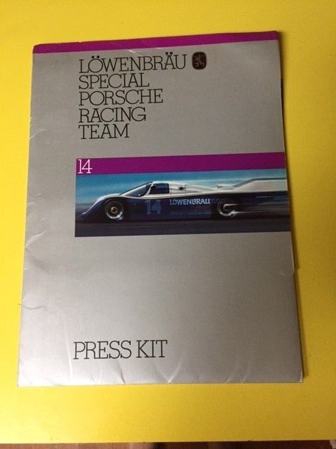 Title (ebay affiliate link): 1984 Porsche 962 Lowenbrau Press Kit, Press Release, Derek Bell Al Holbert RARE!