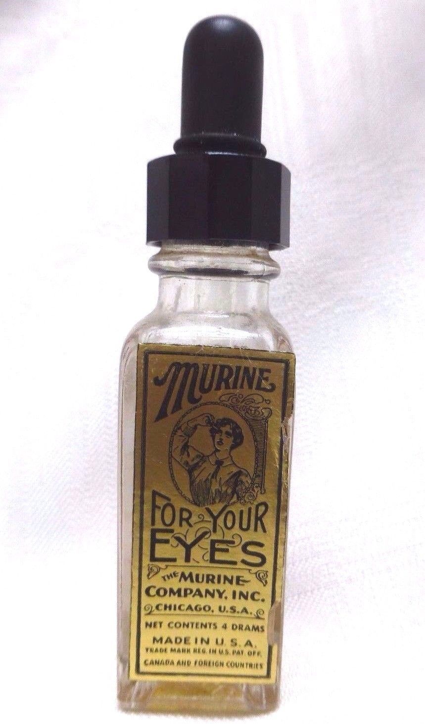 Title (ebay affiliate link): Vintage Murine Embossed Glass Bottle Label Eye Dropper Antique Pharma Apothecary