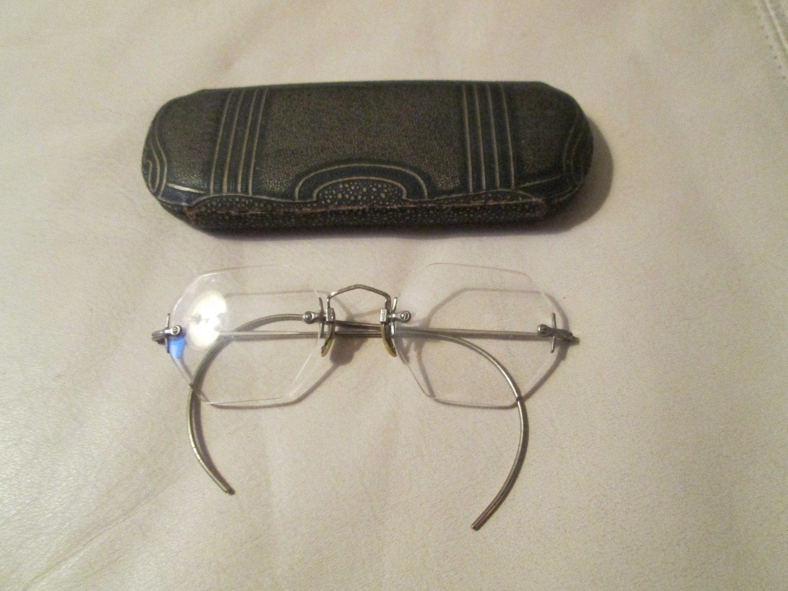 Title (ebay affiliate link): Antique Silver Tone Eyeglasses With Case Rogers Eyesight Emblem Hexagon