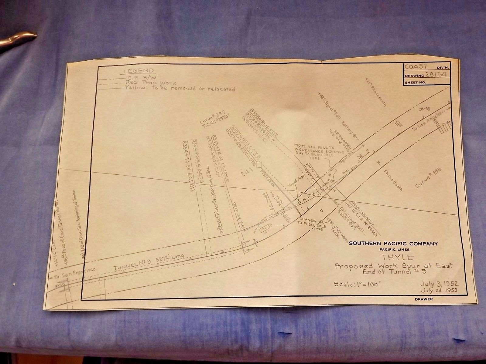 Title (ebay affiliate link): Southern Pacific Co. PACIFIC LINES THYLE WORK SPUR BY TUNNEL DRAWING PLANS 1953