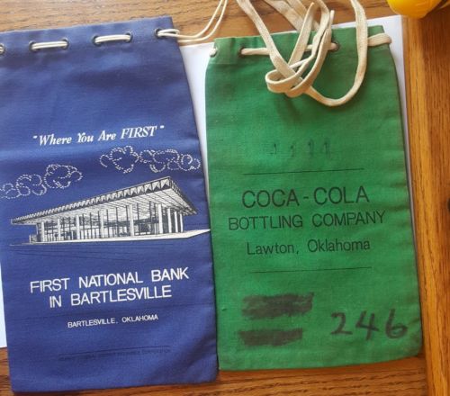 canvas bank bags, vintage lot of 2, Oklahoma, Coca - cola bottling Co, FNB