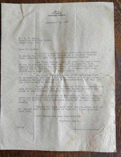 Title (ebay affiliate link): 1927 Signed J.T. Lupton Coca-Cola Kingpin Document Chattanooga to Graceville Fla