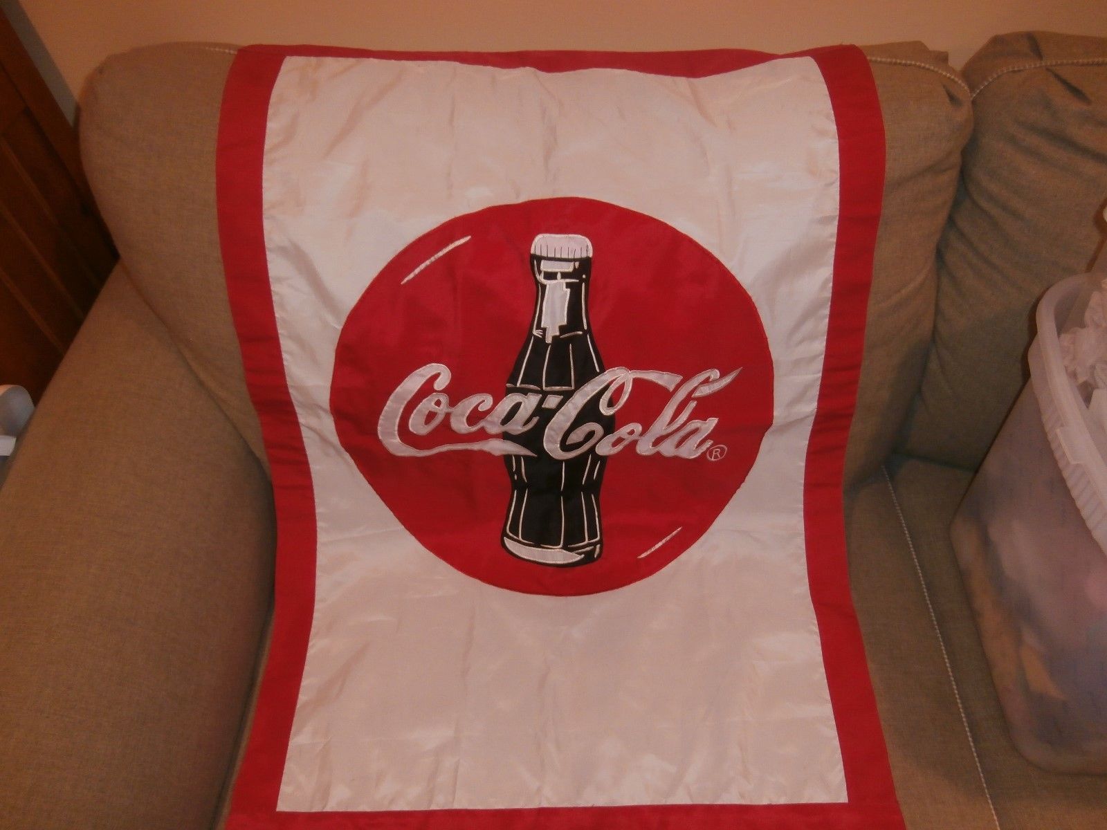Title (ebay affiliate link): Large Coca-Cola Appliqued Button Hanging Banner Flag 40" by 28" Two-Sided