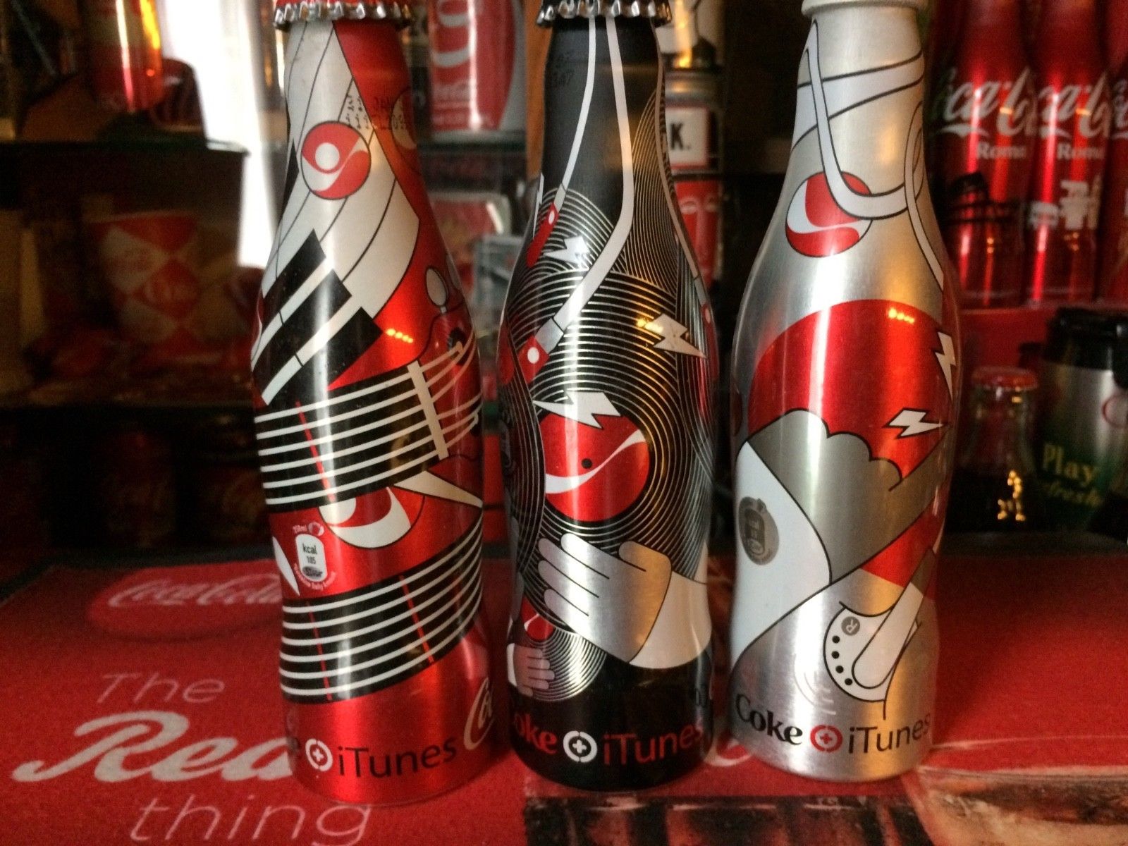 Title (ebay affiliate link): BELGIUM Set 3 Coca-Cola iTunes set Alum Bottles