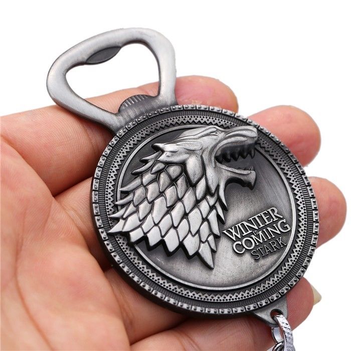 Title (ebay affiliate link): New Antique Gold Color HBO Game of Thrones House Stark Head Metal Keychain