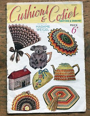 OLD MAGAZINE Cushions & Cosies Knitting & Crochet Madam Weigel nd.c.1940''s