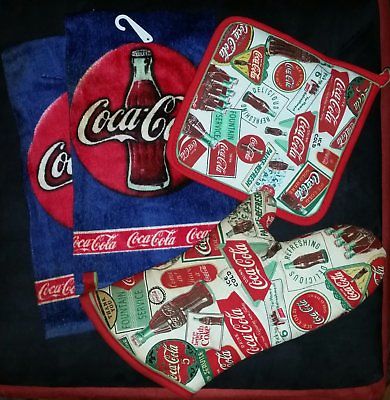 Title (ebay affiliate link): Coca-Cola dishcloth set (2 dish cloths, pot holder, & oven mitt