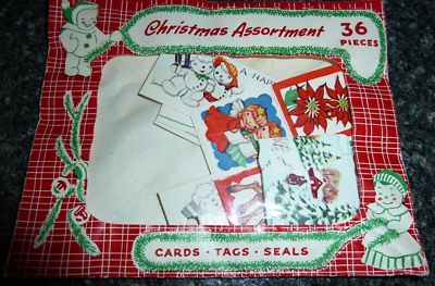 Title (ebay affiliate link): ~Vintage Christmas Cards Tags Seals unopened 36 Set 2