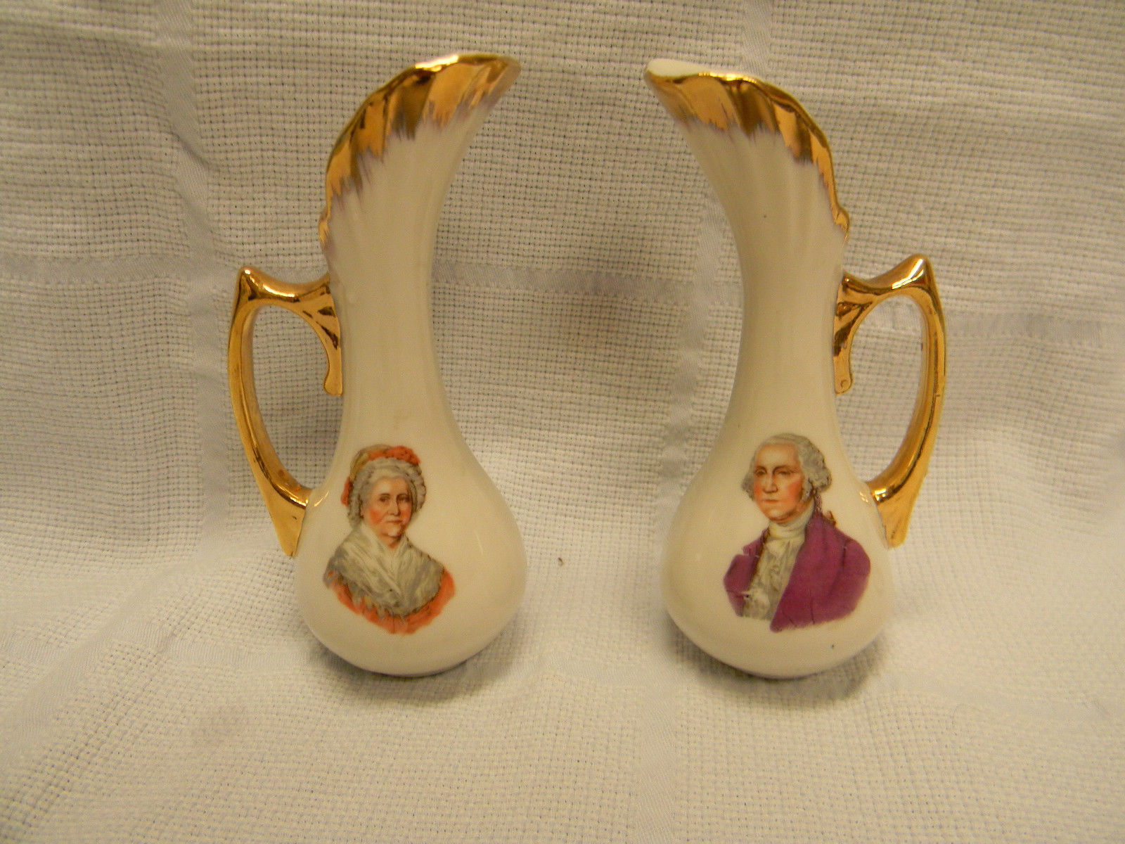 PAIR OF VINTAGE PORCELAIN GEORGE & MARTHA WASHINGTON MINATURE PITCHERS - OLD!!