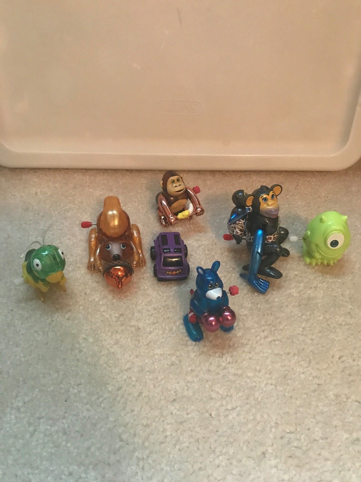 Title (ebay affiliate link): LOT of 7 wind up toys: Squirrel, monkey, kangaroo, monsters inc, car
